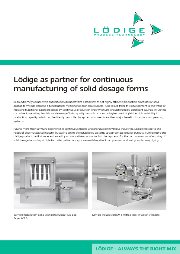 Mit einer großen Bandbreite unterschiedlicher verfahrenstechnischer Anlagen und Maschinen ermöglicht LÖDIGE ein produktspezifisches Prozessdesign, welches die festgelegten Qualitätseigenschaften der zumeist sensiblen Produkte garantiert. Weltmarktführer aus dem Segment der forschenden Pharmaunternehmen vertrauen ebenso in unsere Technologie wie die Produzenten von Generika, Lohnhersteller oder kleinere Spezialfirmen mit Nischenprodukten.