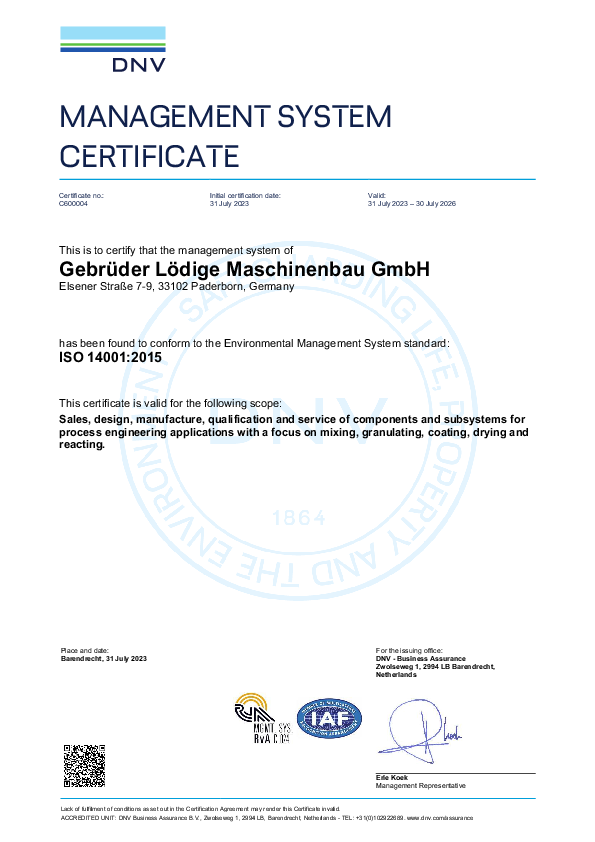 Our Quality Management System has been certified according to DIN ISO 9001 since May 1994.