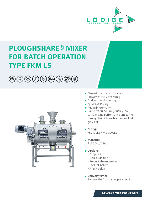 The new LÖDIGE Ploughshare Batch Mixer series FKM LS is available to you quickly and at an attractive price: