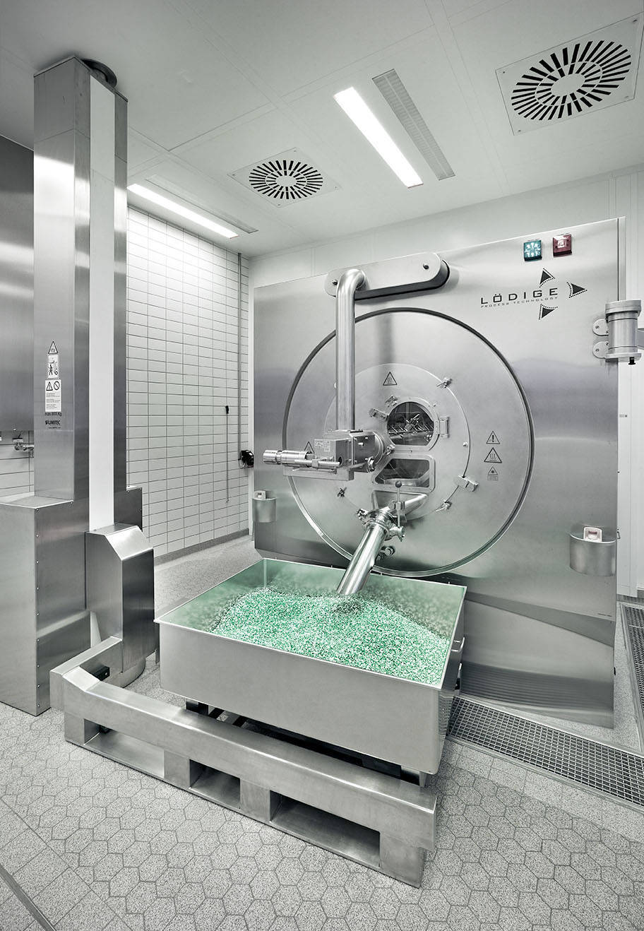 Durch die maximierte Tablettenbett-Oberfläche im Lödige Coater und die maximale Anzahl von Sprühdüsen können bei sehr hohen Zuluftmengen innerhalb kurzer Zeit maximale Flüssigkeitsmengen aufgebracht werden. Dabei wird durch die neu konzipierte, besonders turbulenzarme Luftführung die Trocknungsluft äußerst effizient und produktschonend genutzt. Diese Eigenschaften garantieren einen sicheren Coatingprozess und kurze Prozesszeiten. Zudem werden (durch die turbulenzarme Luftführung) Verschmutzungen von vornherein vermieden, sodass auch der Reinigungsaufwand minimiert ist.