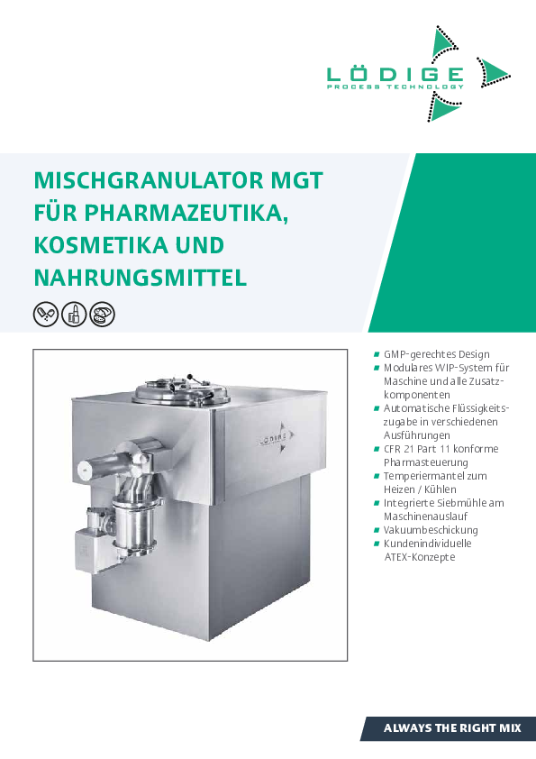 - Mischgranulator für Pharmazeutika, Kosmetika und Nahrungsmittel