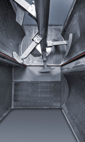 - Große Entleerklappe für sehr kurze Entleerzeiten (hohe Durchsätze)