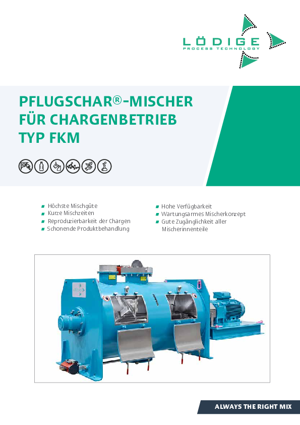 Der Pflugschar®- Mischer für Chargenbetrieb arbeitet nach dem von Lödige in die Mischtechnik eingeführten Schleuder- und Wirbelverfahren. Ausrüstbar mit Werkzeugen, die auf die jeweilige Aufgabenstellung abgestimmt werden, erhält man Mischungen höchster Qualität.