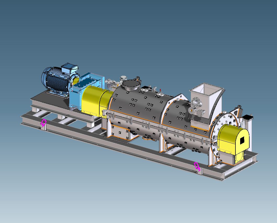 - Beheiz-/kühlbare Trommel, Kopfstücke und Welle durch Doppelmantel