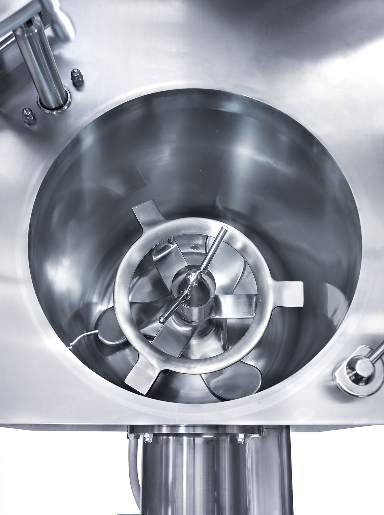 Der Schnellmischer/Granulator stellt die GMP-konforme Weiterentwicklung des Heizmischers dar. Der nach dem Prinzip eines Friktionsmischers arbeitende Schmelzgranulator eignet sich hervorragend für Schmelzgranulationsprozesse in der Pharmaindustrie. Dabei kann der Schmelzgranulator sowohl als Einzelgerät als auch in Kombination mit einem Kühlmischer betrieben werden.